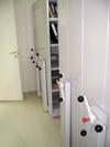 - Рельсовые пути раздвижных стеллажей имеют алюминиевые пандусы для использования архивных тележек;